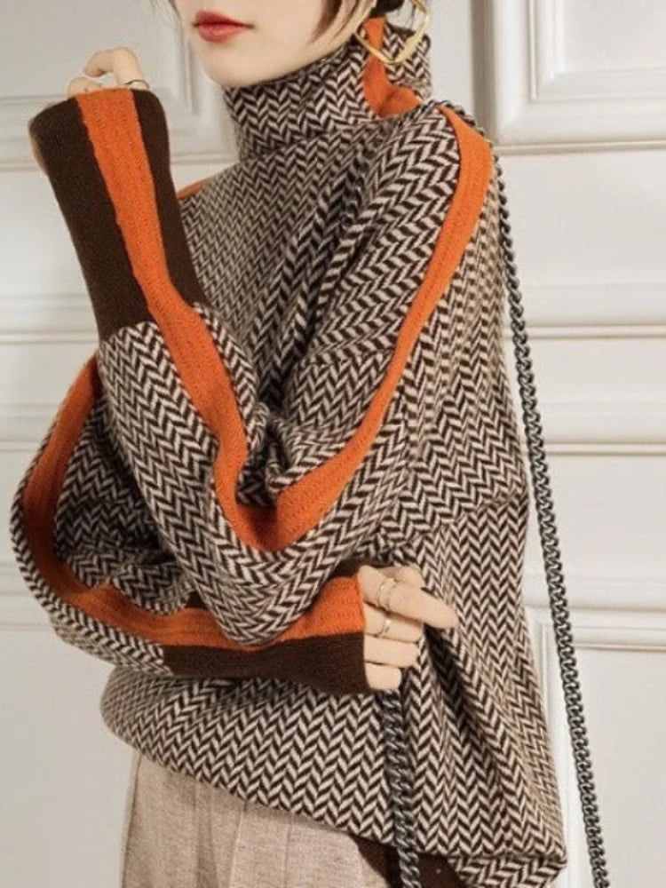 Rullekravesweater med kontraststriber